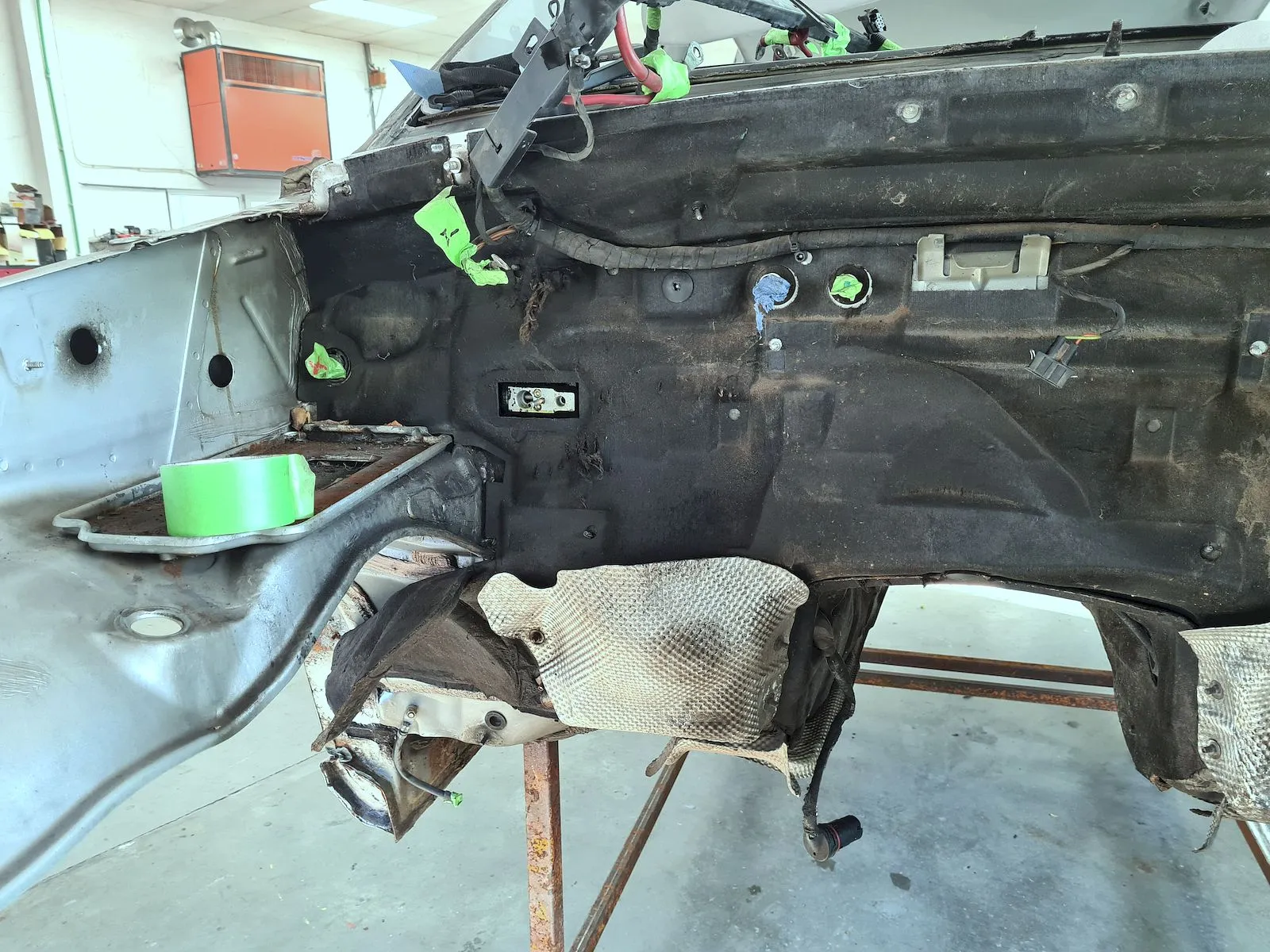 Motor und Getriebe bleiben drin. Da man aber im momentanen Zustand sehr gut an den Motor kommt, werden wohl die Ventilschaftdichtungen erneuert, denn der Motor hat immerhin 510.000km gelaufen. Das wird dann ein Motorinstandsetzer dort vornehmen. Die Fahrwerksteile sind vor nicht allzu langer Zeit erneuert worden. Das geht auch gut, wenn der ML wieder zusammengebaut ist.