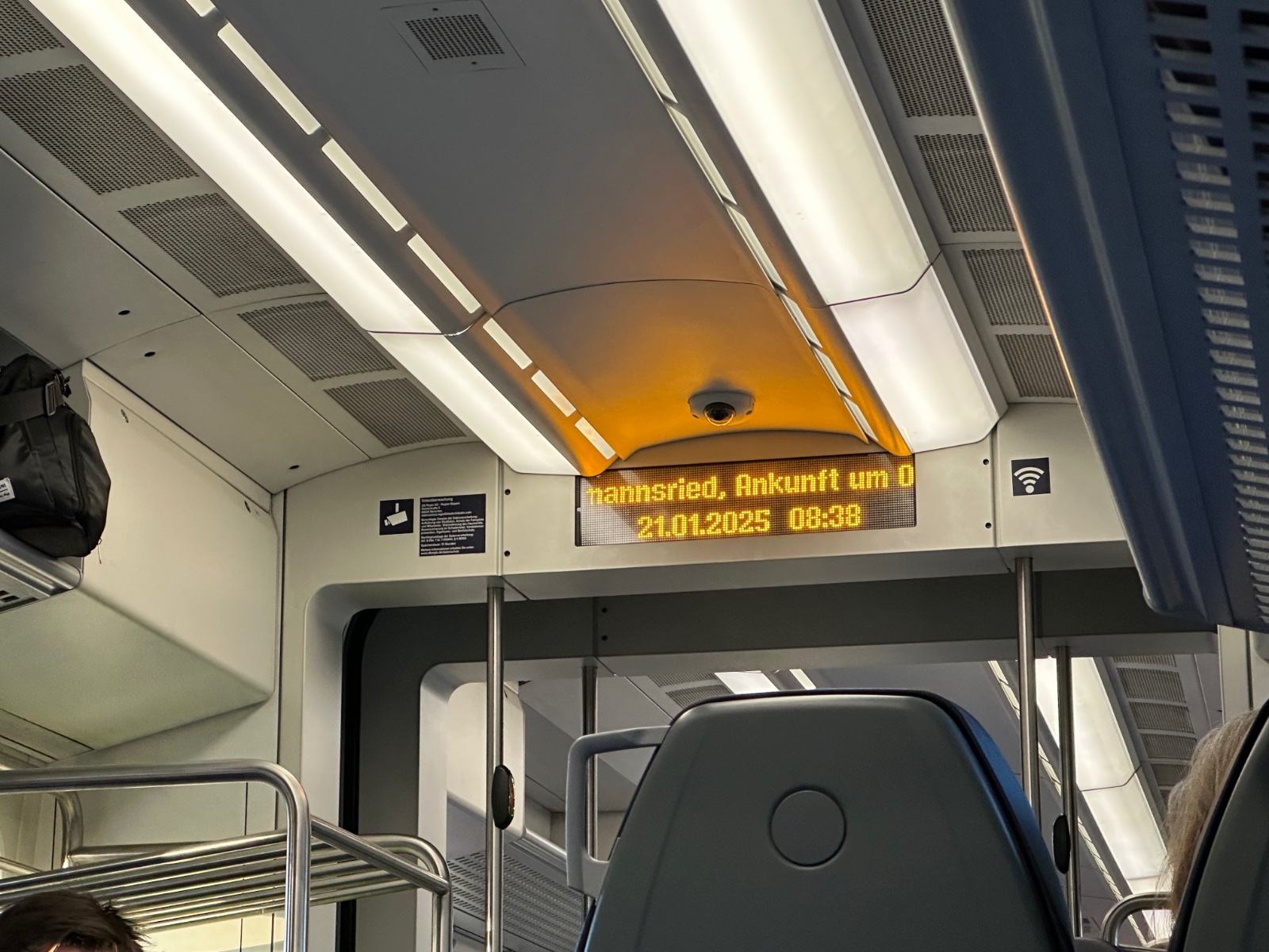 Am Dienstag habe ich es mal gewagt und meinen ersten Ausflug ohne Begleitung gemacht. Abfahrt mit dem Bus zum Bahnhof um 07:12, Ankunft am Bahnhof 07:22. Der Zug fährt um 07:35, sollte klappen, so mein Gedanke. Also steh ich in der Kälte und warte auf den Bus, und der kommt nicht. 12 Minuten später fährt der vollelektrische Bus dann doch noch vor und brachte mich zum Bahnhof, jetzt aber schnell mit dem Rollator zum Bahnsteig. Über den längeren Weg die Rampe hoch, angekommen. Gerade kann ich noch die Rücklichter erkennen, von meinem geplanten Zug wie dieser soeben den Bahnhof verlässt. Planänderung? Der nächste Zug fährt dann in einer Stunde, also zurück in die Wartehalle und in meinem E-Book lesen. den nächsten Zug hab ich dann erwischt, der Einstieg war auch allein kein Problem und ich hatte dann sogar einen schönen Sitzplatz.