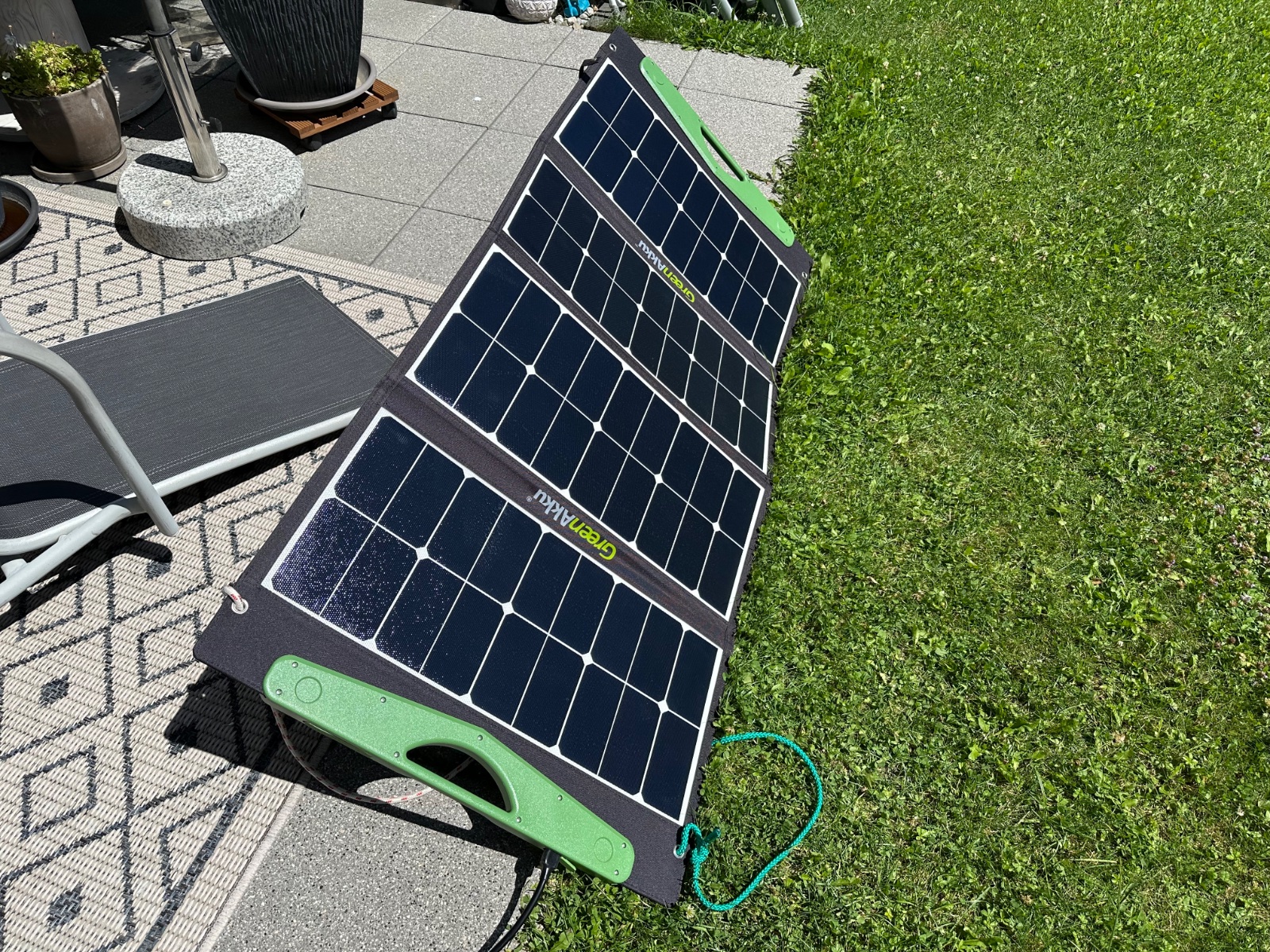 Das schöne daran ist die Einspeisung dann aus der Powerstation, der Regler verteilt den Strom zuerst in die Wohnung und den Rest dann in die Batterie. So kann ich dann die Batterie das ganze Jahr über nutzen und nicht nur fürs Camping. Jetzt noch zwei größere Module mit je 435 Watt/Peak besorgen und das passende Gestell dazu bauen.