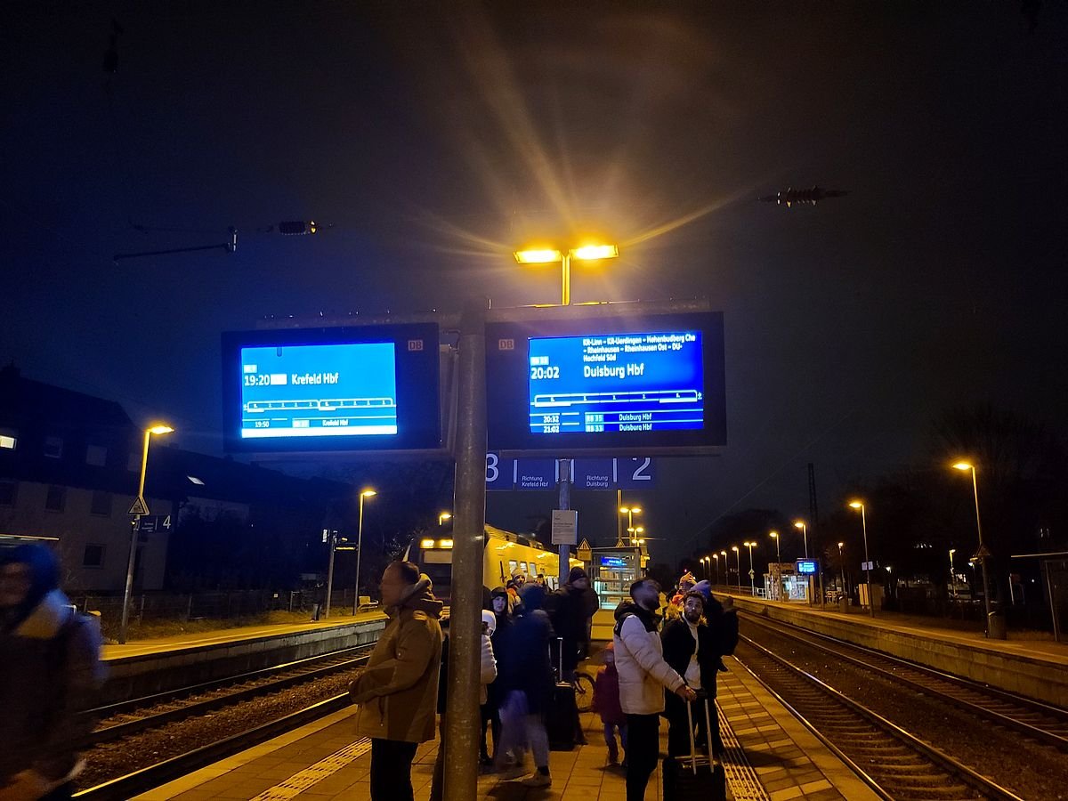 Die Bahn fährt hier alle 15min. Wohlweislich wolle ich eine früher nehmen, um mich in DU-Hbf noch etwas umzusehen. War nichts. Schaut Euch die Anzeige genau an. Das meinen die ernst!