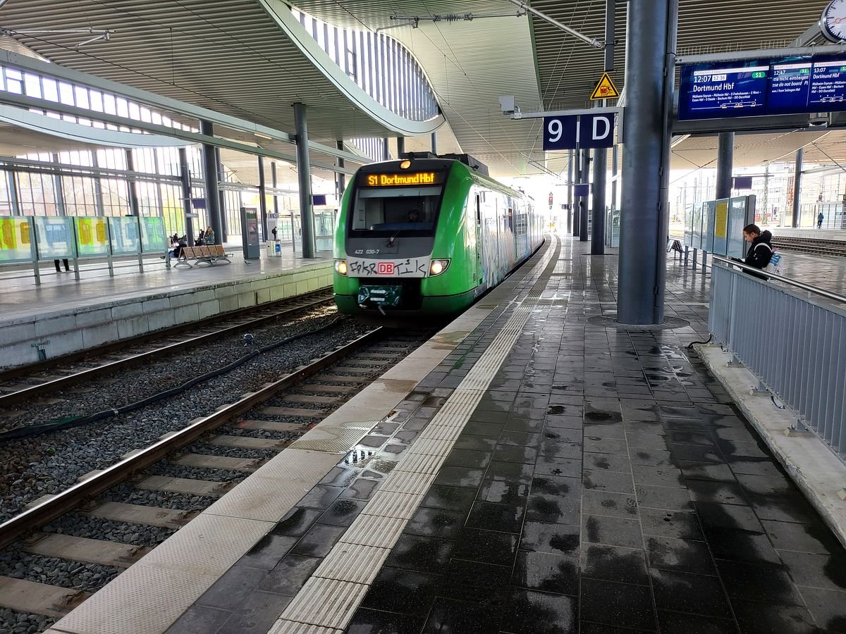 Den fast Baugleichen Sky-Train vom Düsseldorfer Flughafen hatte ich schon besucht. Das war gegenüber der H-Bahn aber Kindergeburtstag. Hier gehts dagegen richtig zur Sache. Nehm ich mal lieber den Bus... Und dann die S1, erstmal bis DU-Hbf.