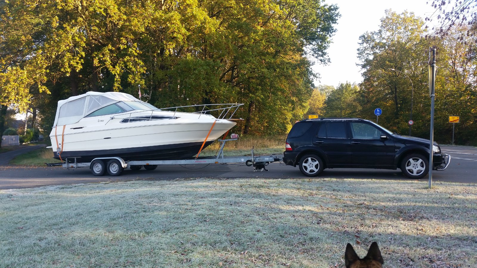 Bin mit dem Gespann nur vom Grundstück runter um ein Foto vor der Abfahrt zu machen... musste natürlich unser Kater zum gucken kommen