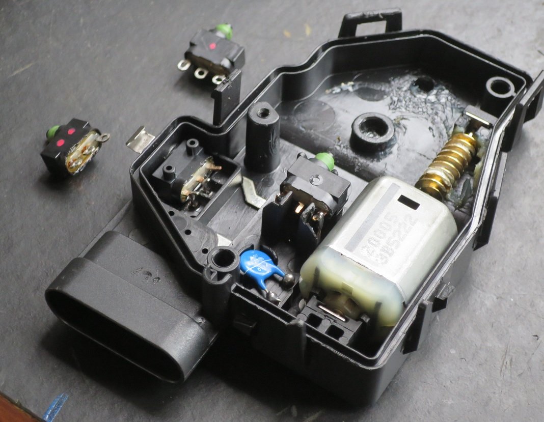 Ich erkenne keinen Defekt am Schloss. Die zwei Mikroschalter öffnen und schließen, soviel hab ich mit einem Multimeter gemessen. Nun könnte es natürlich sein, dass sie das in eingebautem Zustand wegen irgendwelcher mechanischen Ursachen nicht mehr tun?