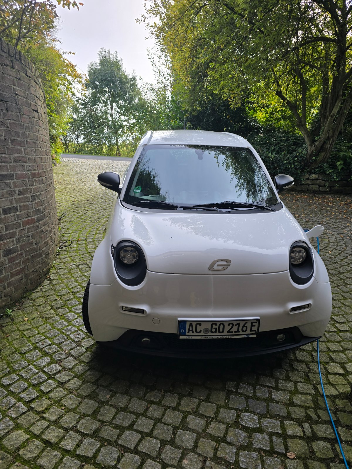 Eben ist Susi Sausewind mit einem ego Lifestyle hier eingetroffen, der jetzt erst einmal mit Solarstrom betankt wird. Verbaut ist eine 21kWh-Batterie, Schnellladen kann er noch nicht, so benötigt er für eine komplette Füllung an einphasigem 240V-Netz ca. 6 Stunden. Bei Ankunft war sie zu 52% gefüllt. Die Reichweite des 78PS starken Fahrzeugs beträgt laut ADAC im Sommer ca. 120km und im Winter ca. 80km. Gleich mache ich mal eine Probefahrt damit und besuche auch unseren ML.