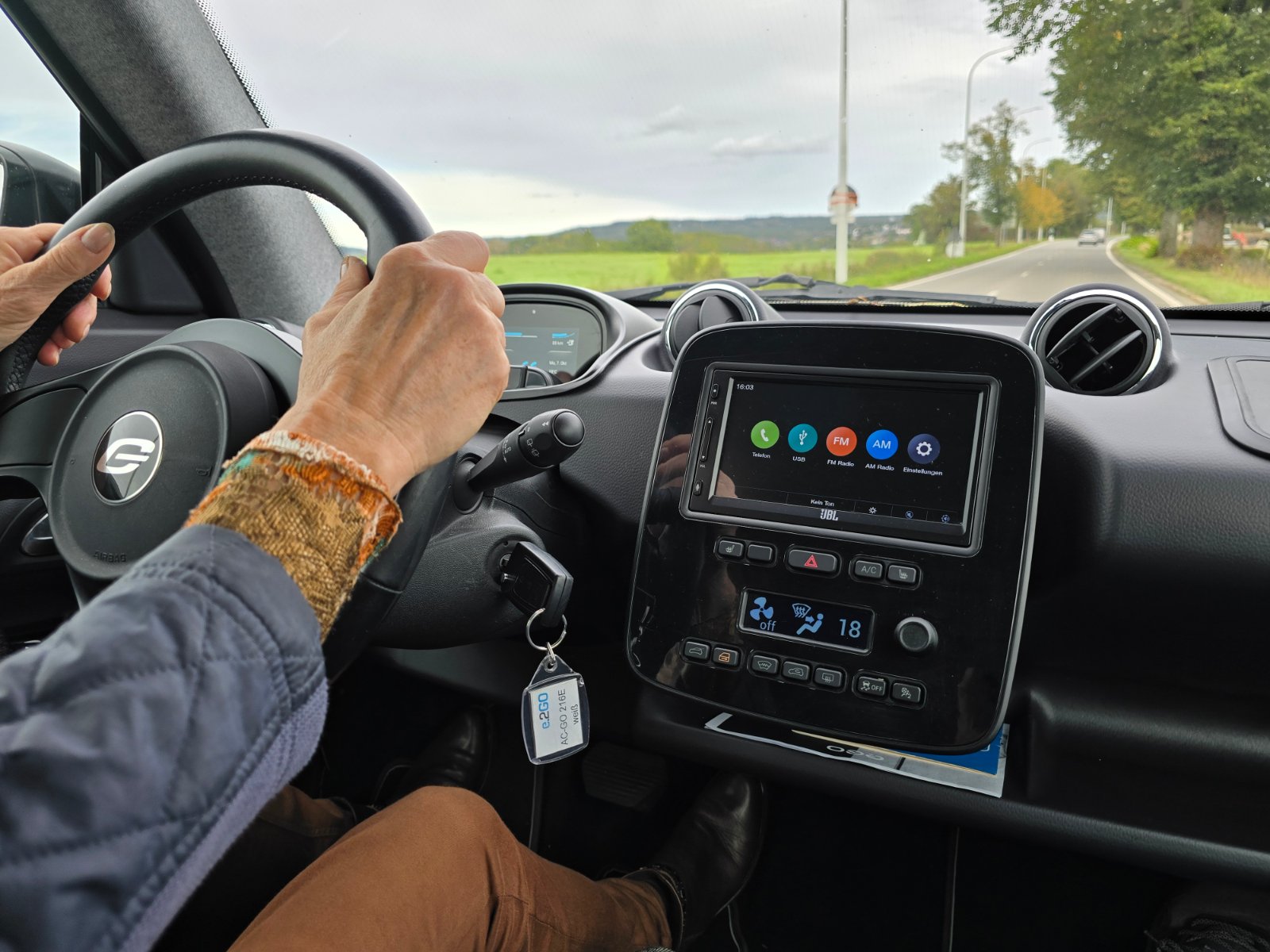 Danach bin ich mit ihm nach Eupen zum Besuch unseres MLs gefahren. Im Display sieht man die geschätzte Restfahrstrecke, die sich natürlich je nach Belastung dauernd ändert. Bergauf geht die Anzeige schnell zurück aber bergrunter, solange man nicht die Bremse betätigt, geht es auch wieder hinauf. Das liegt natürlich an der Rekuperation, der Rückgewinnung von Energie, wenn es bergab geht oder das Fahrzeug nur rollt.