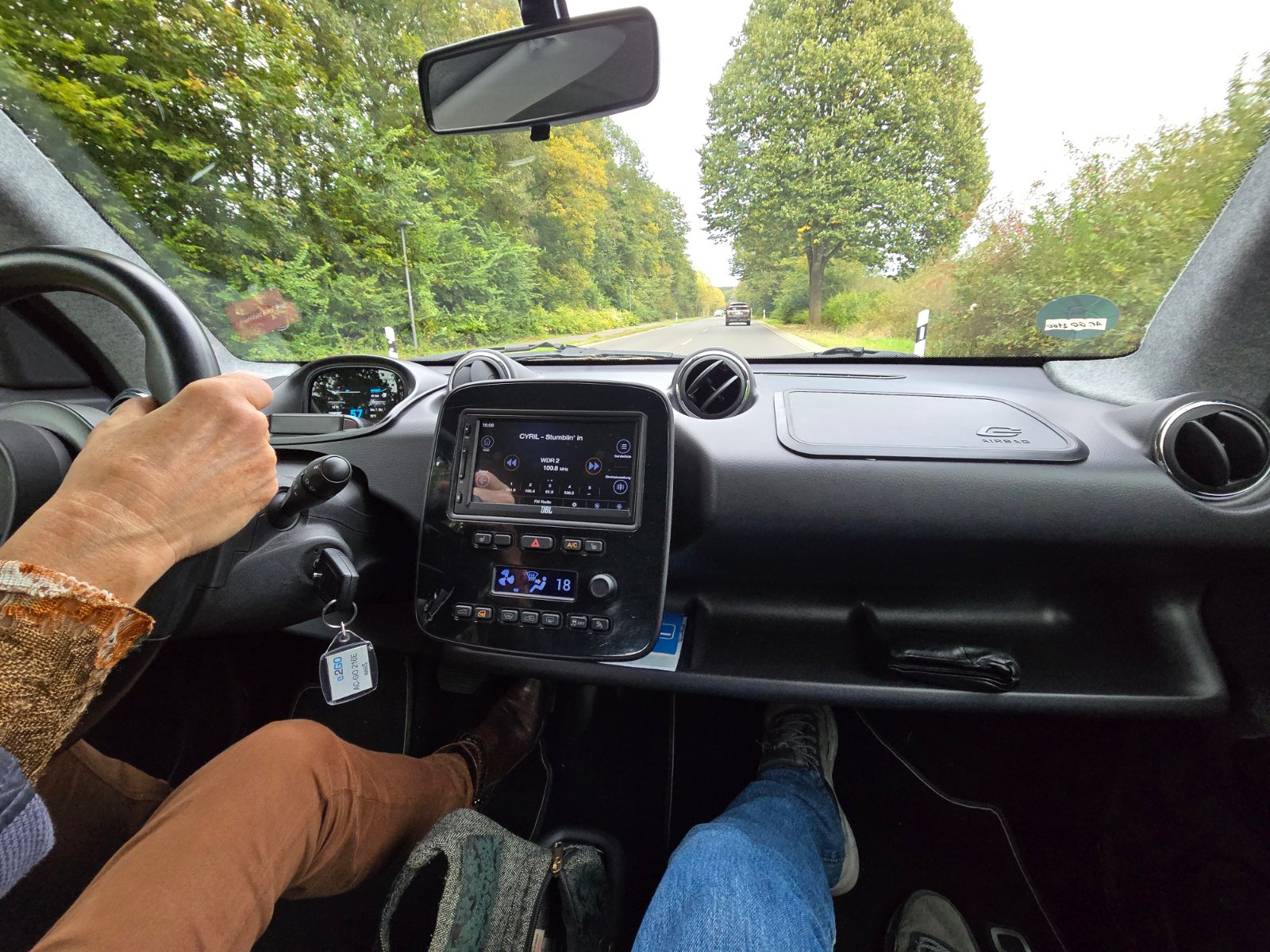 Auch wir finden ihn beide nicht schön. Heute war ich mit ihm zunächst als Beifahrer unterwegs, um den Rennschlitten an Susis Arbeitsplatz abzuholen. Anbei ein paar Fotos davon.
