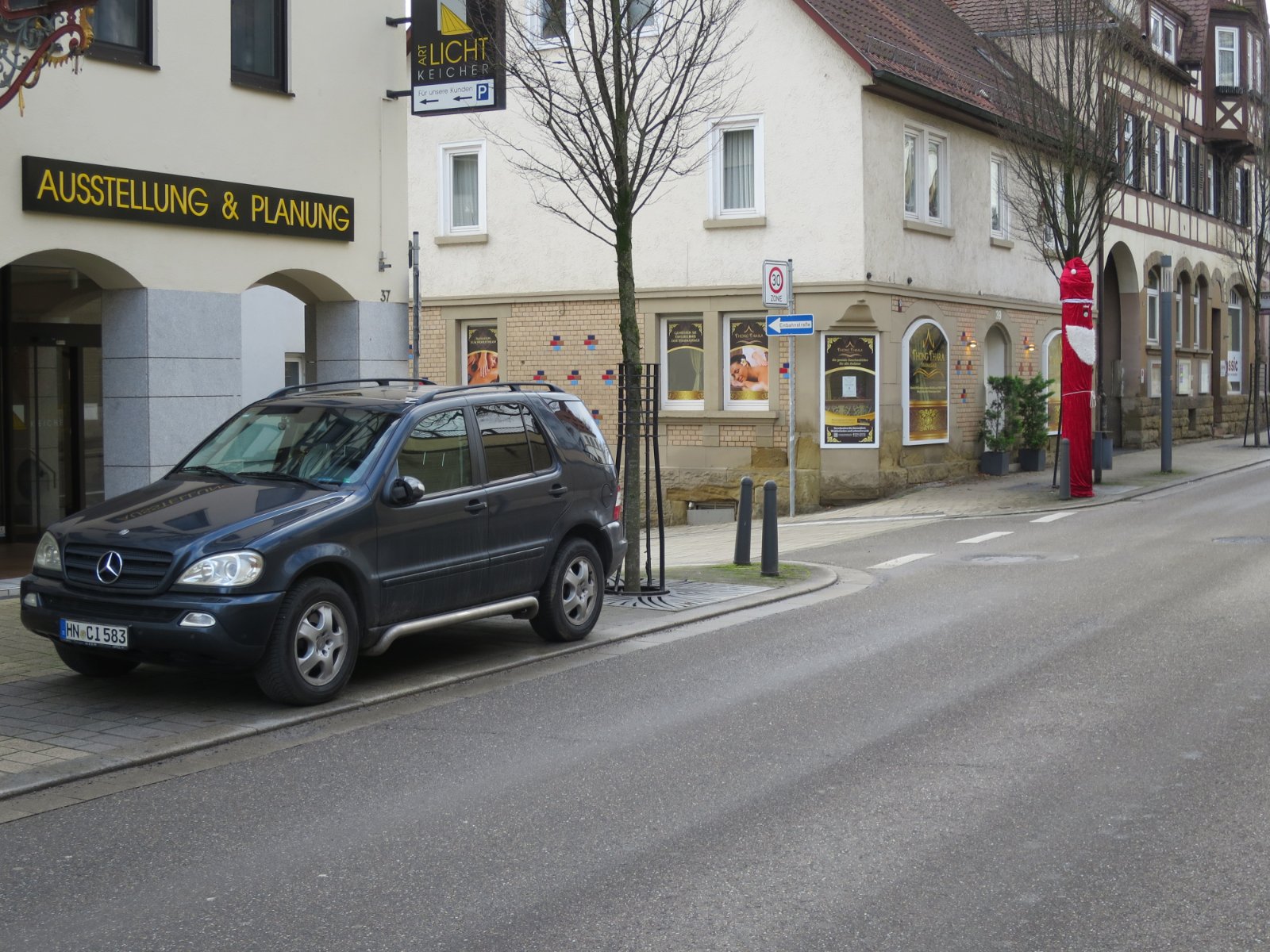 Da der ML umgeparkt werden mußte, um keine Knonne zu bekommen, ja, tatsächlich geht das nach wie vor so, daß der ML 2 mal die Woche die Straßenseite wechseln muß, und der mich mit recht dick vereister Frontscheibe zum Frühsport brachte, hab ich gleich noch ein Stück meiner üblichen 5km am Tag drangehängt.
