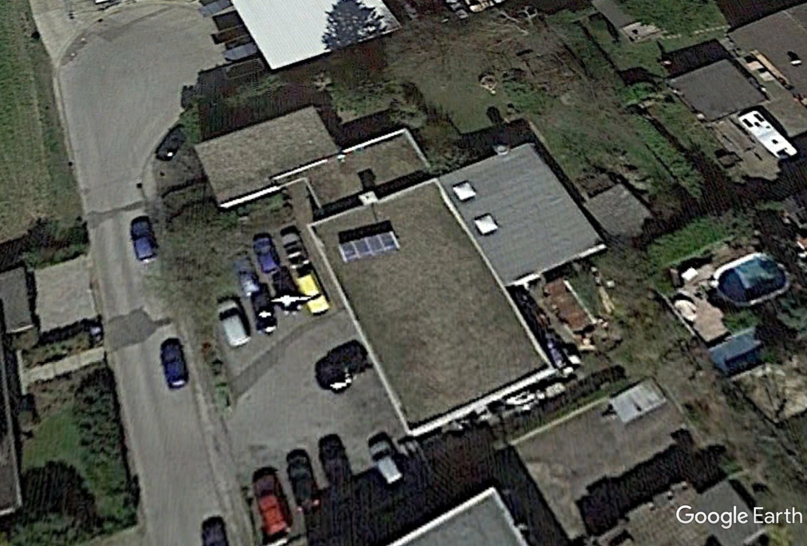 Der Ort liegt nach offiziellen Listen in der Schneelastzone 1. Die Werkstatt und die angrenzenden Büro- und Wohngebäude wurden 1972 gebaut. Die Werkstatt ist ca. 20m*15m groß, ohne Anbauten. Das Stück rechts wurde erst vor gut 10 Jahren angebaut. Wesentlich ist aber die Werkstatt, auf der sich die 4 Solarthermiemodule befinden.