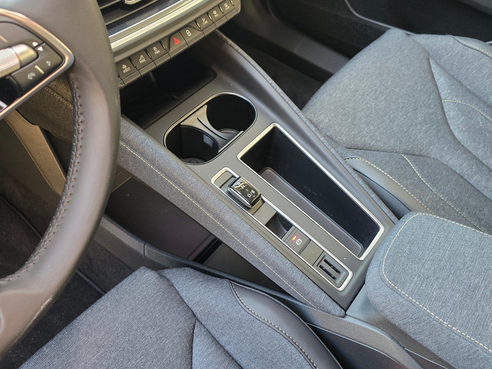 Bei Annäherung ans Fahrzeug wird man mit Licht begrüßt und kann die Türen einfach durch berühren mit der Hand öffen. Die Heckklappe versteht auch Gesten mit dem Fuß. Der Wählhebel für die Fahrstufe ist sehr klein, aber vollkommen ausreichend. Da ich immer mit Tempomat unterwegs bin und ganz besonders in diesem Fall, störte es mich sehr, dass er bei eingestellter Tempoerkennung per Kamera, immer wieder, auch wenn ich manuell den Tempomaten reduziert hatte, bei geänderter Geschwindigkeitsbegrenzung wieder diese genommen hatte. In meinem Fall wollte ich ja nur 80km/h fahren. So habe ich den Tempomaten bei eingeschalteter Abstandsregelung auf max. 80km/h gestellt. Sobald aber nun ein Schild kam, das z.B. 120km/h erlaubte, wurde dies damit überschrieben. Die 80km/h wurden nur dann beibehalten, wenn das erkannte Verkehrszeichen dieselbe Geschwindigkeit vorgab, wie das letzte. Bedienungsanleitung habe ich aber noch nicht gelesen, vielleicht kann man das ändern. Bei jedem Start werde ich gefragt, ob ich diverse Apps updaten lassen möchte. Nö, möchte ich nicht, ich will einfach irgendwo hin.