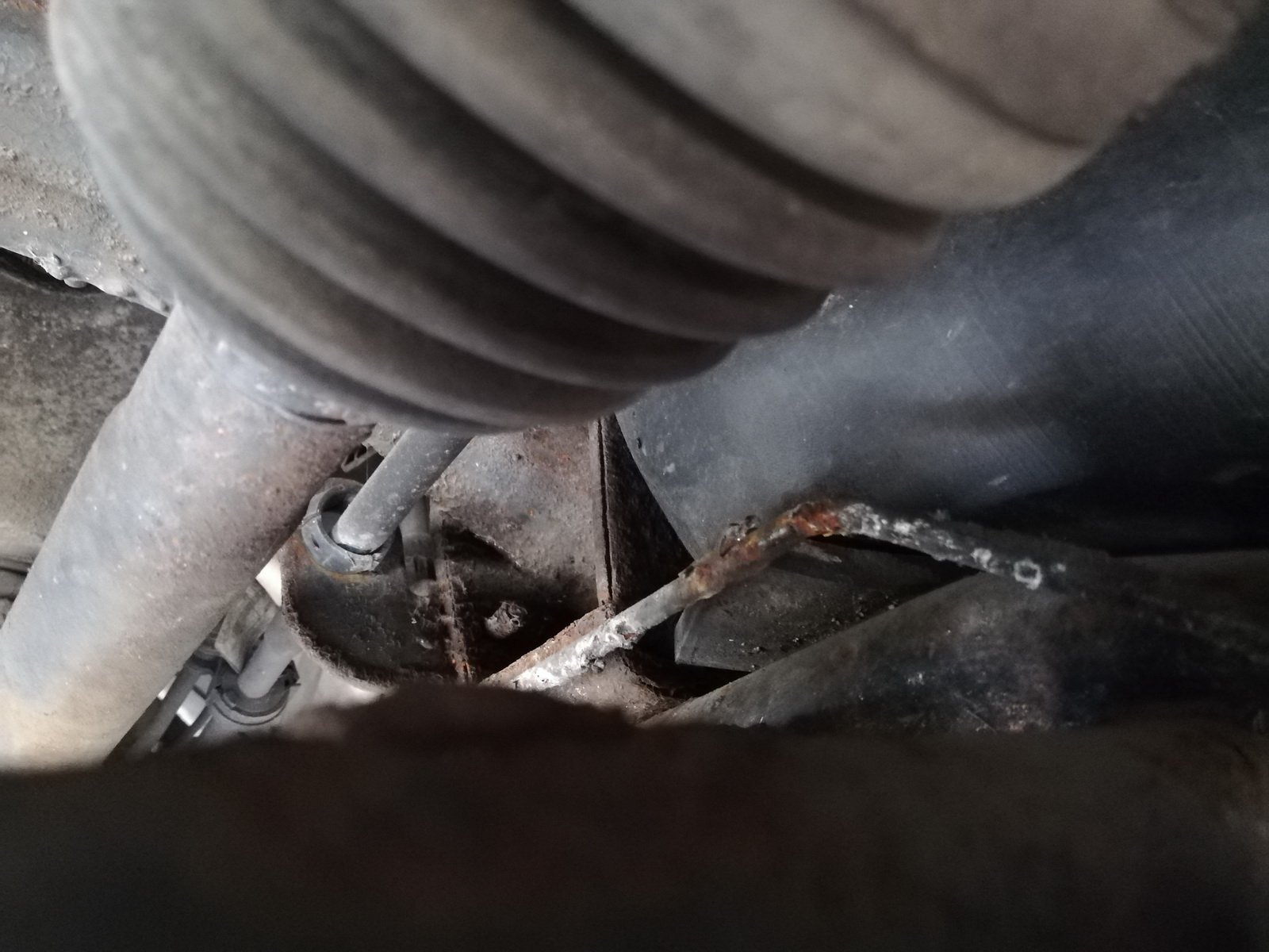 Die hintere Querleitung hatte ich ja vor Jahren schon mit Rostschutzlack behandelt. Die jetzt auffällig gewordene ist eine, wo ich wohl mit dem Pinsel nicht hingekommen bin. :crazy: