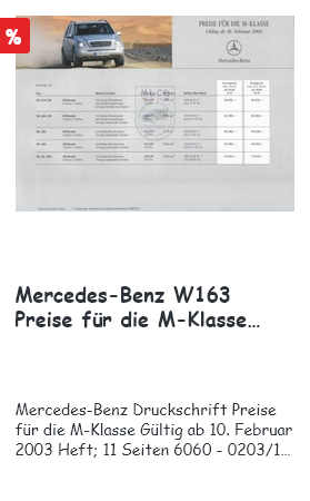 Noch weitere Meinungen zum Preis des hier gezeigten neuen M-Klasse-Folders, der noch vor Markteinführung der M-Klasse in Deutschland an Mercedes-Benz-Mitarbeiter ausgegeben wurde?