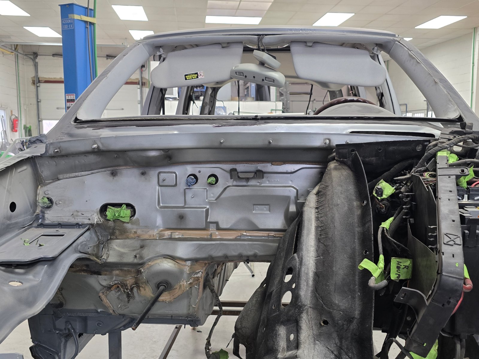 Gestern war ich mal wieder bei unserem ML, der langsam aber sicher Fortschritte macht. Mit Glück wird die Karosserie vielleicht in etwa 14 Tagen lackiert werden. Dieter Kurabi fragte mich schon, ob ich vielleicht eine andere Farbe wählen möchte, denn schließlich wird ja alles inklusive Motorraum lackiert werden. Aus Gründen der Originalität habe ich mich aber wieder für 744 Brillantsilber entschieden. Außerdem könnte ich mich nach gut 500.000km an eine andere Farbe auch nicht gewöhnen. Anbei mal Bilder vom aktuellen Zustand.