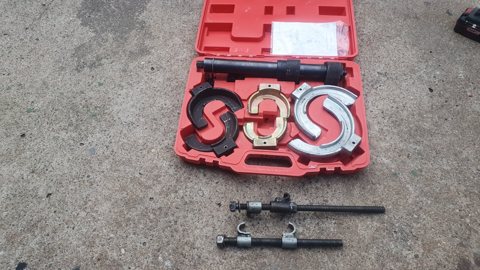 Hallo guten Morgen! Hier noch ein Nachtrag. Der große Federspannersatz hab ich dafür benutzt,wobei es eine Knifflige Angelegenheit ist da die Federn sehr eng gewickelt sind und verdammt dick sind. Ich habe auch noch die einfachen Spanner mitbenutzt. Einfach ist es nicht da ist auch sehr viel Vorsicht geboten. Den Koffer habe ich schon vor Jahren bei einem großen Aktionshaus für um die 120€ gekauft. Arbeitszeit um die 3-4 Stunden ungefähr.