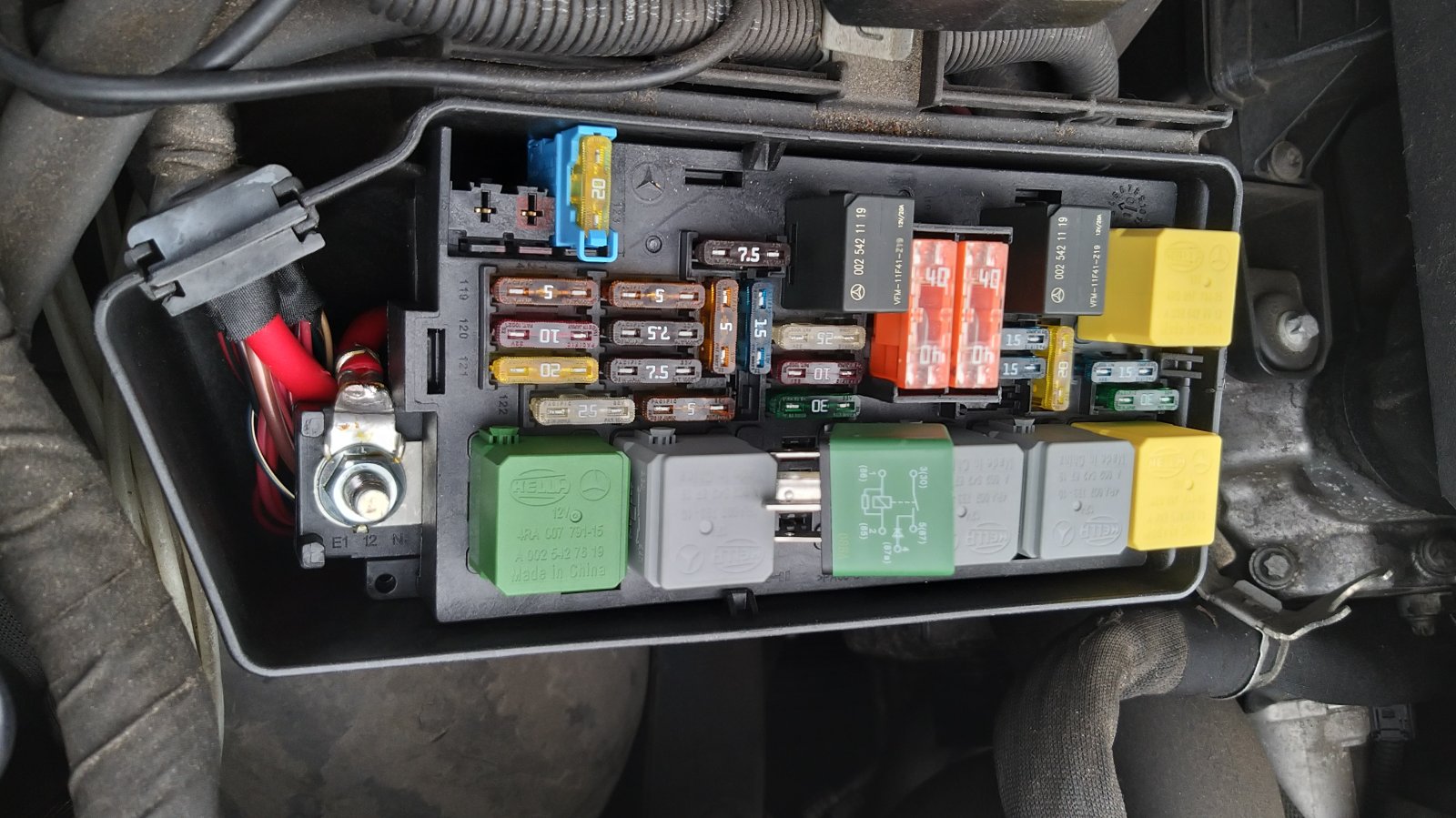 Der Ventilblock und das Relais kamen gestern an und das Relais habe ich nun vorsorglich getauscht - wie es wohl von Mercedes auch empfohlen wird, wenn man den Kompressor tauscht. Der Tausch hat nur ca. 2 Minuten gedauert, da ich ja genau wusste, wo ich das Relais finden kann.