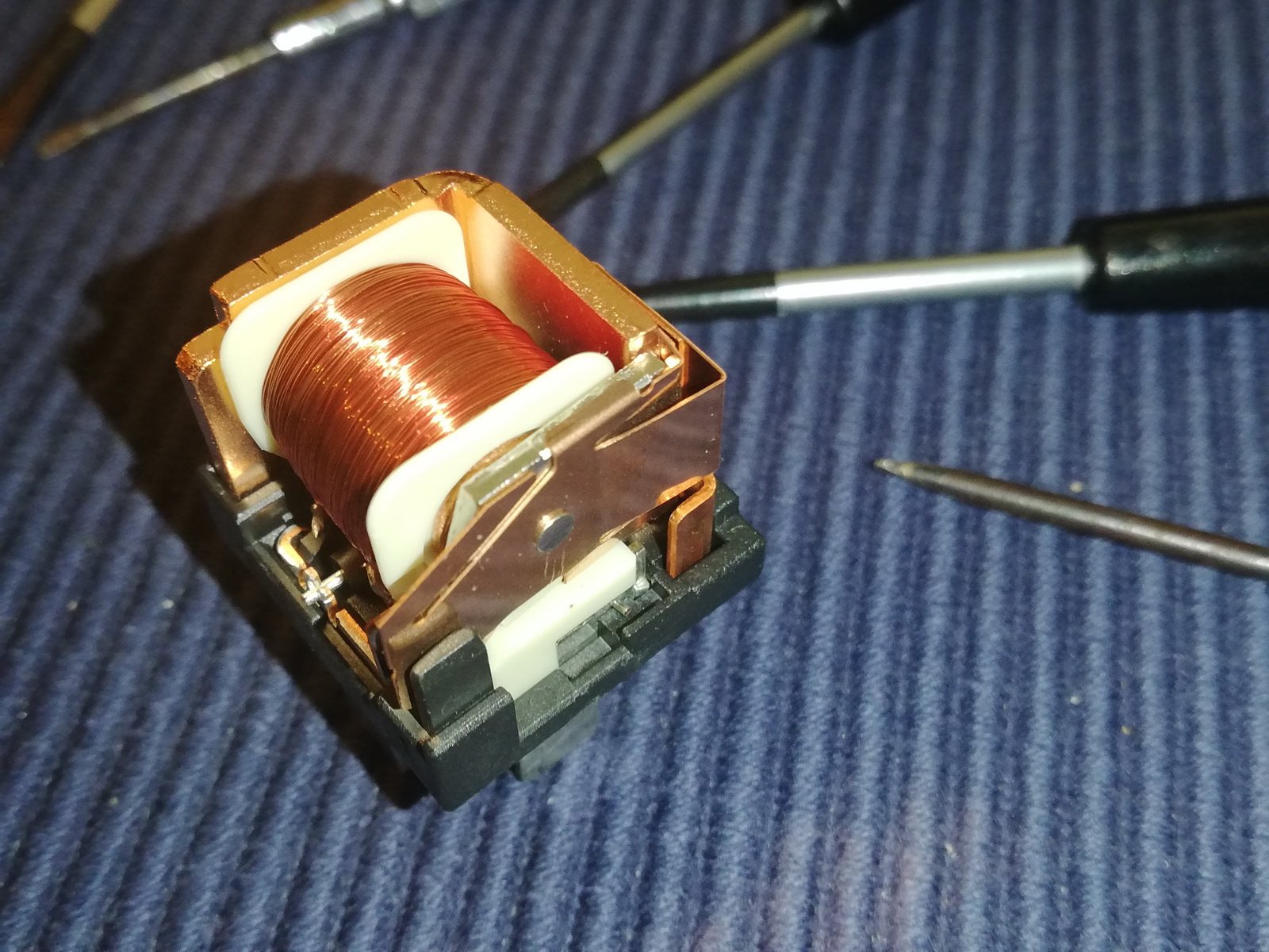 Diese Art Relais, Made in China, ist nun wirklich nicht mehr ohne Spezialwerkzeug zerstörungsfrei zu öffnen. Das Gehäuse kommt nicht ohne Risse davon, wenn man sich mit den üblichen Werkzeugen daran macht es vom elektrischen Innenleben zu entfernen.