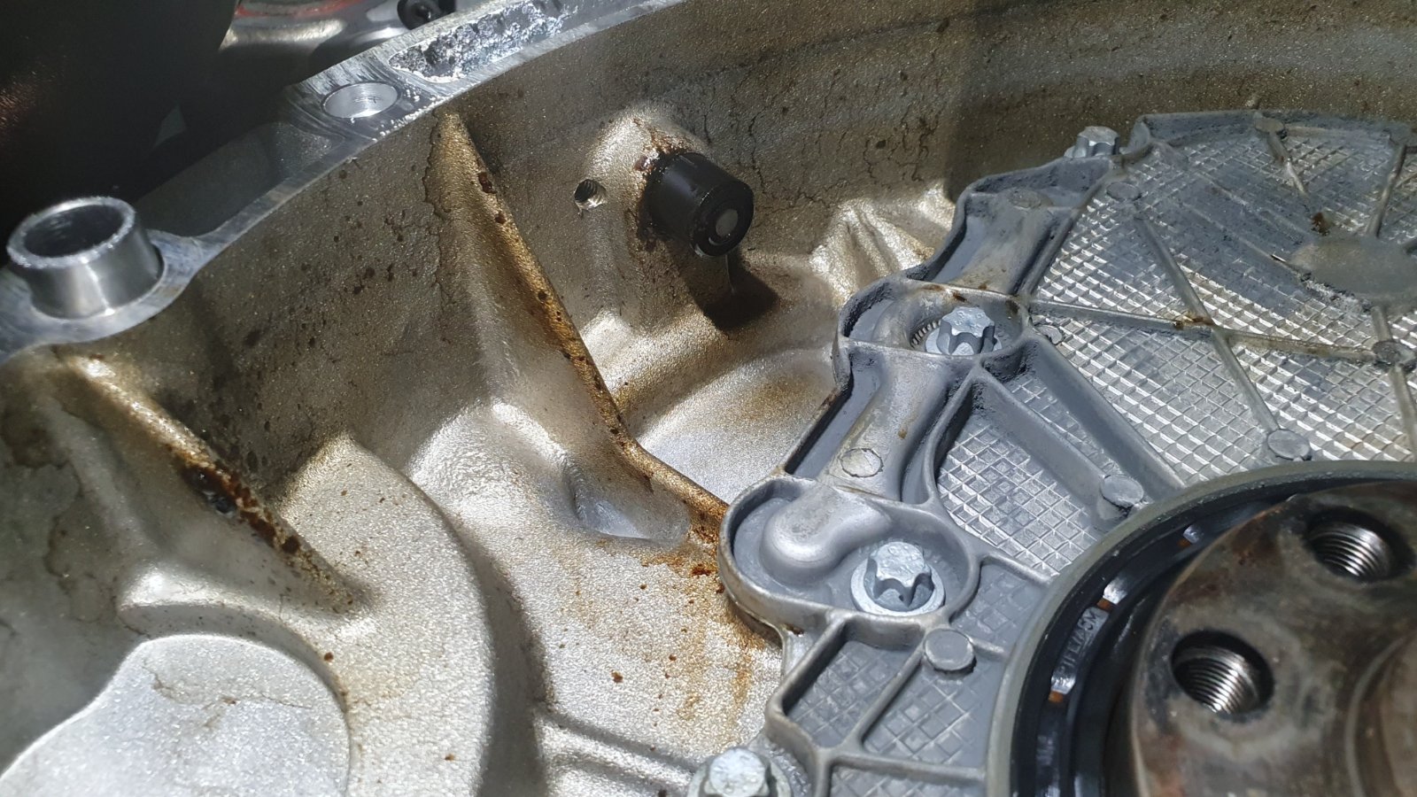 Bei der HU war schon wieder Öl. So wie ich es erkennen kann kommt es wahrscheinlich von dem Dichtring Kurbelwelle getriebeseitig.