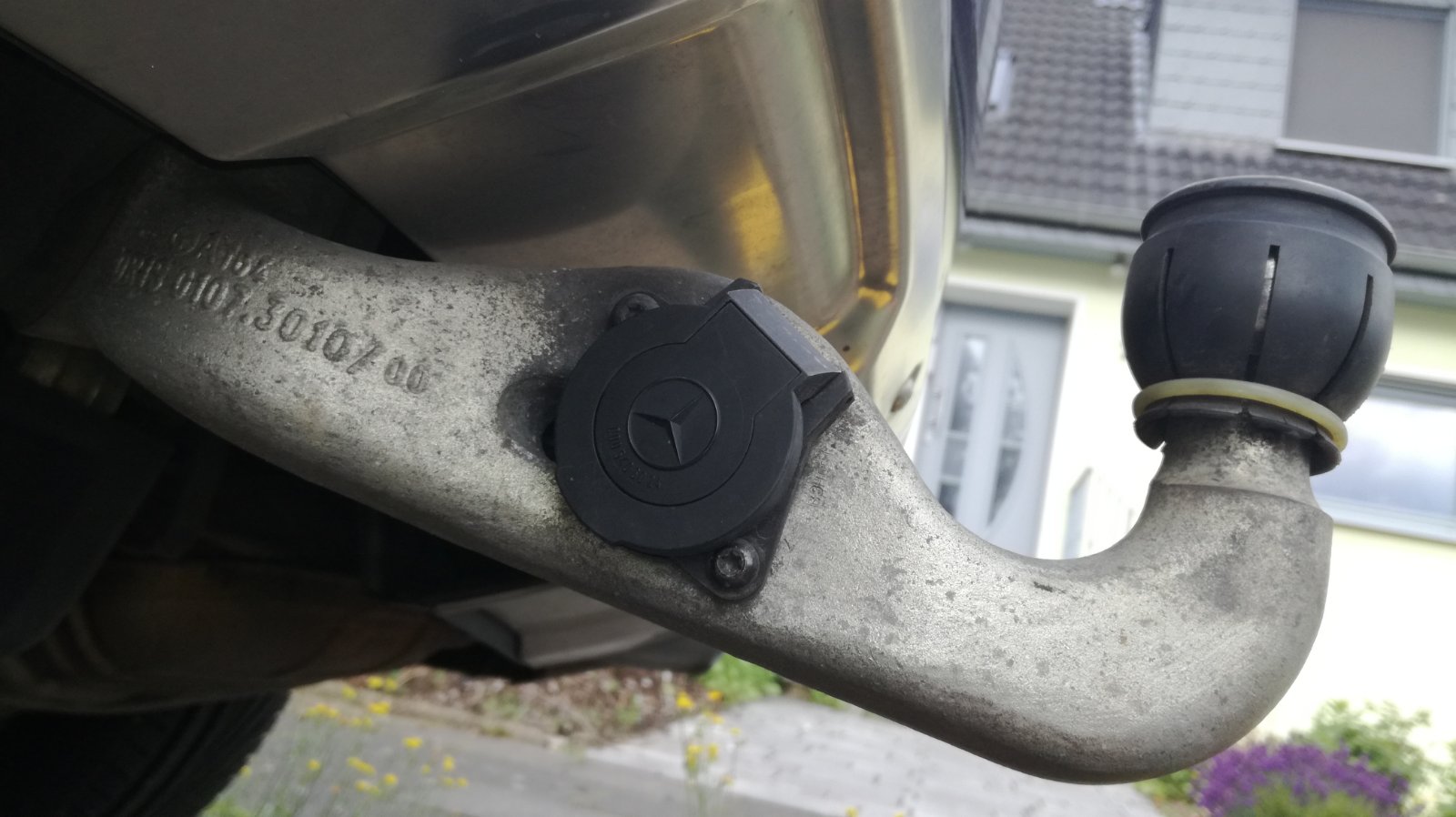 So Niederlande wir kommen, die berühmt berüchtigte Öse ist montiert. Es war eingentlich ganz einfach und nur ein kleiner Aufwand. Hier ein paar Bilder: Das wurde geliefert, also den Halter, 2 6mm Schrauben und 2 U-scheiben. Zu bemängeln ist, dass die Muttern fehlten, denn das sind selbstsichernde, die man nur einmal verwenden sollte. Hatte ich aber noch. Hier die leicht angerostete Kugel (lange nicht mehr benutzt) mit der Streckdose, an die der Halter befestigt wird. Die beiden Schrauben, an die die Steckdose und der Halter befestigt werden. Fertig montiert und einsatzbereit. Blick von oben,