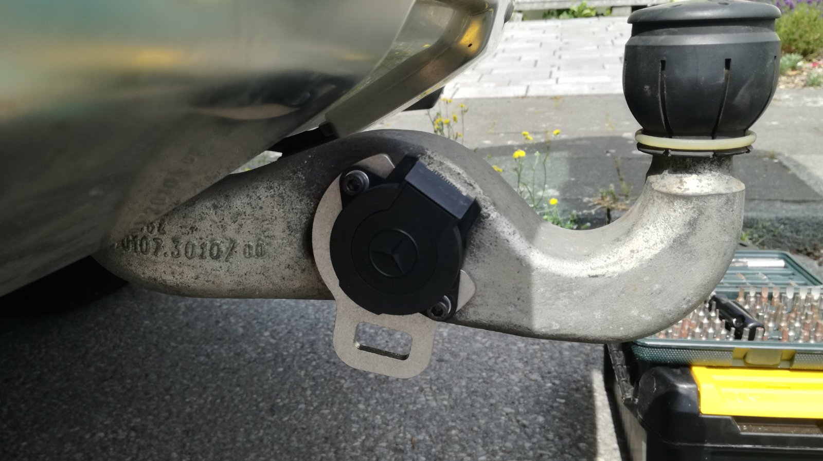 Die eigentliche Montage war ein Kinderspiel. Dank der Oberaufsicht durch den Nachbarn (Schlosser) war das Gewindeschneiden handwerklich korrekt ausgeführt (so sagt er). Die Öse sitzt perfekt fest und die Anhängerkupplung lässt sich wie gewohnt Ein- und ausklappen, ohne dass ich etwas besonderes machen muss.