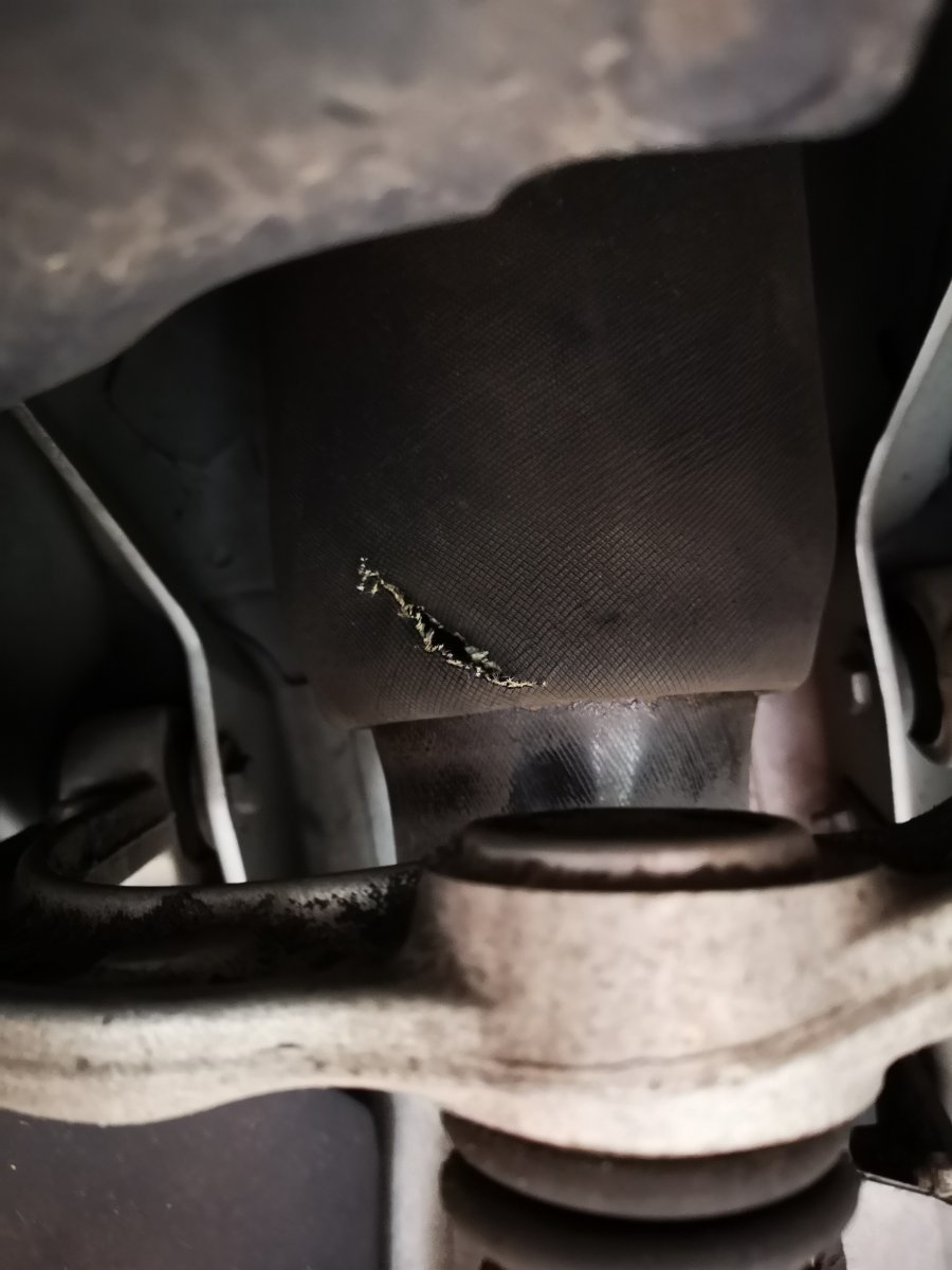 Moin, nachdem der ML am Donnerstag morgens nicht mehr hoch kam und ich meine Frau aber zur Tagespflege bringen mußte hat die Tagespflege auf mein betteln hin sie dann am Nachmittag nach hause gebracht. Am Freitag nachmittag, nachdem die Bauarbeiter ins Wochenende abgezogen wahren habe ich vorsichtig den ML durch die Baustelle unters Carport manövieriert. nach dem hochnehmen mit 2 Wagenhebern hab ich nach genauem schauen einen Schaden am Luftbalg gesehen. ob das nun der Ursprungsschaden ist müssen wir abwarten, vielleicht ist das auch durch das Fahren entstanden.