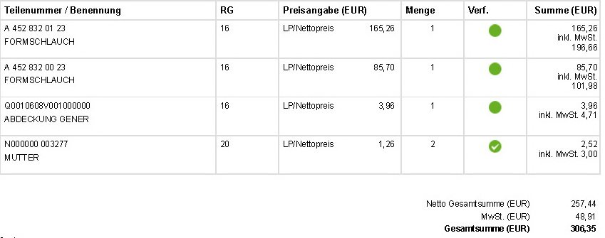 Deie Bestellung hatte zwar, wegen eines Defekts in ider Daimler AG-Software, eine Nachfrage, jedoch läuft da alles planmäßig. Das bestellte Teil wird wohl morgen an Heinsberg per UPS auf dem Weg zu Dir sein.