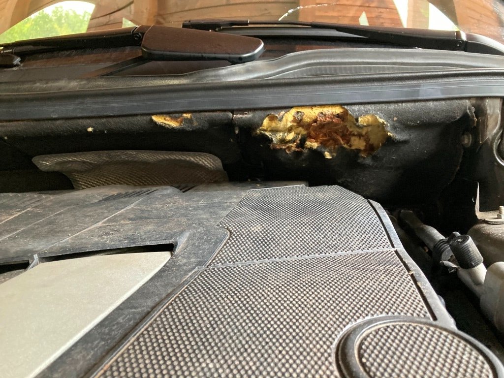 Diese Stelle scheint besonders anziehend zu sein. Bei meinem ML war es auch beim W163 genau diese Stelle. Allerdings in der Haubendämmung und nicht an der Spritzwand.