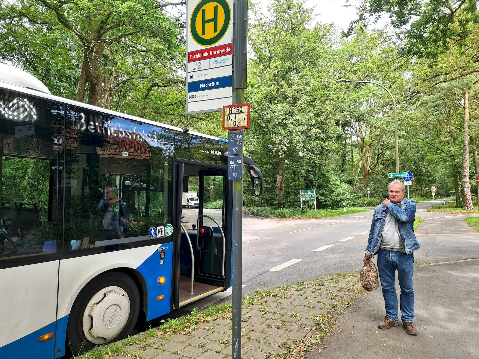 Wie Herr :koenich: schon schrieb, haben wir gestern gemeinsam unserem Herrn OrdnungsMinister Leo einen Besuch in Münster abgestattet. So ging für mich die Fahrt schon mit dem Linienbus aus dem belgischen Kelmis, wo ich unseren ML in etwa 3 km von zu Hause geparkt habe, um 6:50Uhr los, um sicher pünktlich den Zug zu erreichen, der mich zunächst nach Mönchengladbach und nach Umstieg dort, nach Münster bringen sollte. Es war eine entspannte Fahrt, in Mönchengladbach waren wir zwar 5 Minuten zu spät dran, aber ich hatte 11 Minuten Zeit zum Umsteigen, so dass ich doch noch den Zug nach Münster erreichte. Um 9:00Uhr erreichten wir Duisburg, wo dann Herr :koenich: sich zu mir gesellte. Nun hatten wir noch eine Fahrtzeit von 1,5 Stunden bis nach Münster Hauptbahnhof vor uns. Dort angekommen, nahmen wir den Linienbus zu Leos Unterkunft, wo wir kurz vor 11Uhr eintrafen.