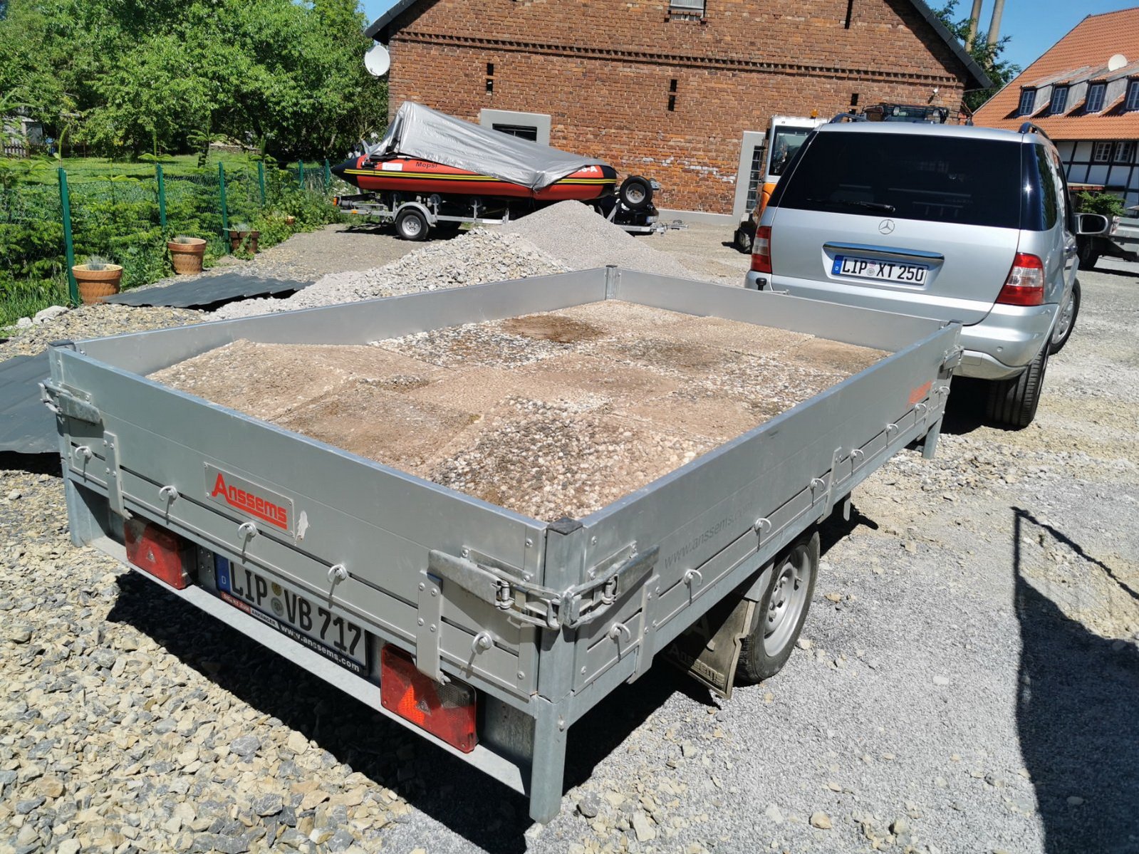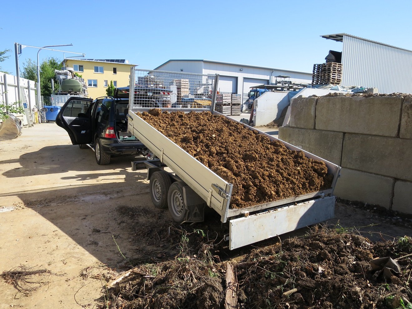 Letzte Woche half ich meinem Bruder, einige Tonnen Lehm wegzubringen, anbei ein Bild von dieser Aktion. Das war eine ganz neue Erfahrung für mich, dabei konnte ich auch üben, wie man mit Anhänger rückwärts fährt. Es klappte immer besser. Zum Schluss hab ich sogar mit Hänger gewendet!