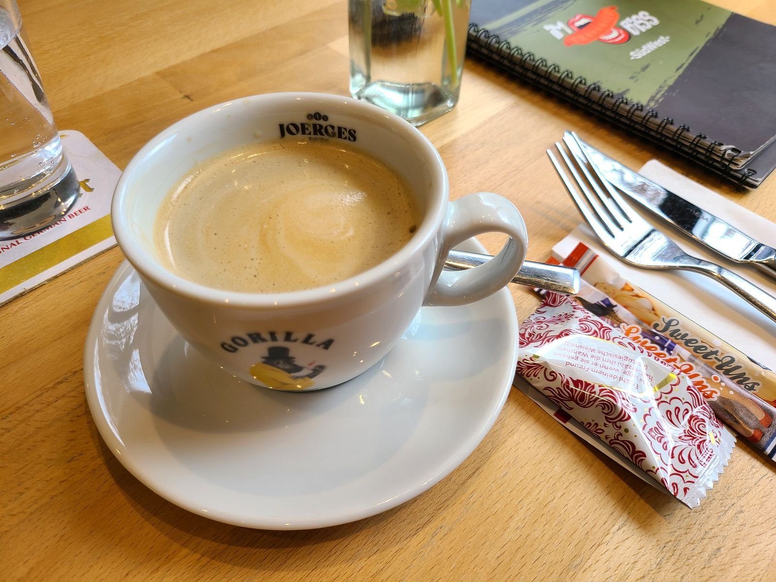 Erst mal ´n Kaffee. Sehr schön, wie auch der erste Eindruck des Lokals in dem man wert darauf legt ein Imbiss und nicht etwa ein Restaurant zu sein.
