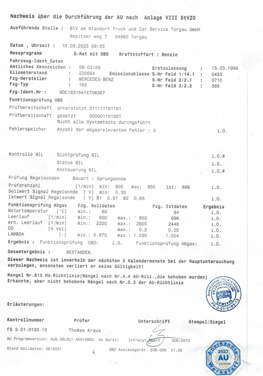 So, habe die Plakette für die nächsten zwei Jahre bekommen und die Inspektion. ML fahren war schon immer etwas teurer