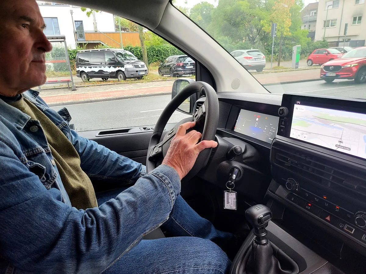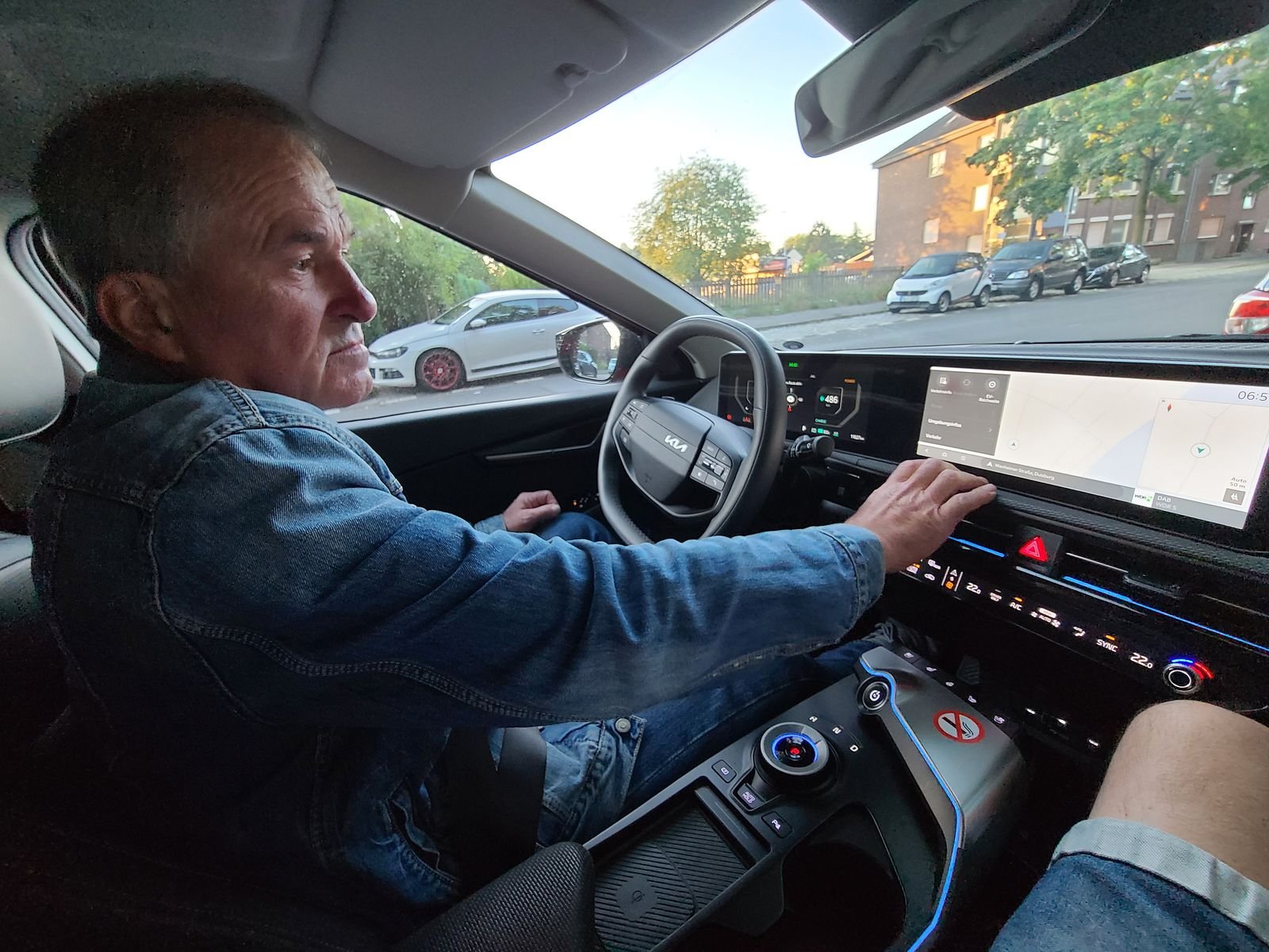 Auf nach Gladbeck! Nur gut, daß Manfred schon geübt hat, mit der Unmenge an virtuellen Knöpfen und dem Bildschirm, dessen rechte Areale mit üblichen asiatischen Armlängen wohl nicht mehr erreichbar sein dürften.