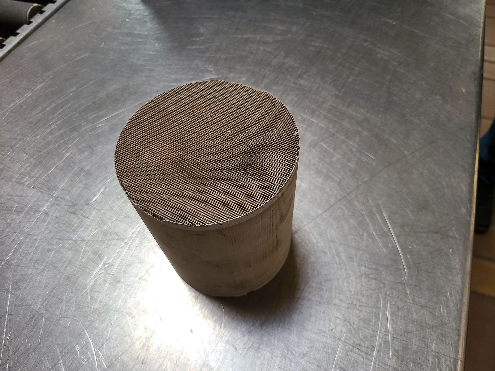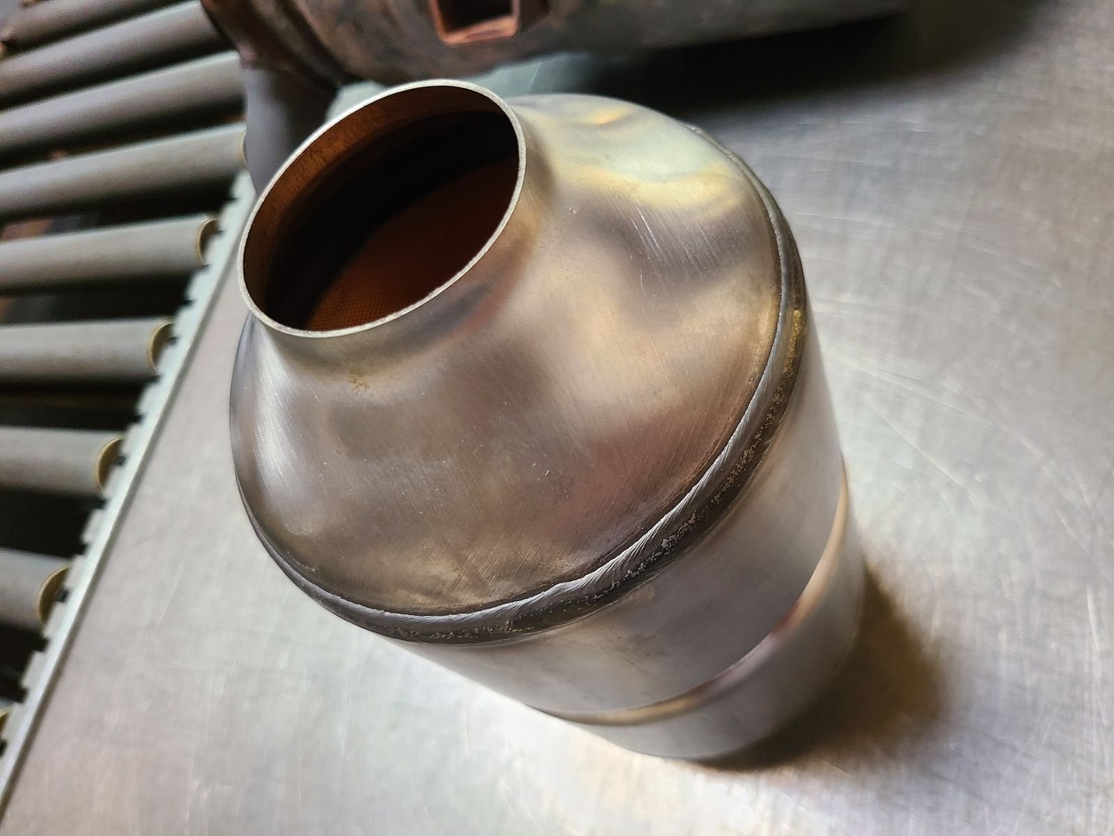 Und hier mal ein Beispiel eines Kats mit Edelstahl Trägermaterial und wie dieser im Gehäuse nicht nur festgeklemmt, sondern verschweißt wird.
