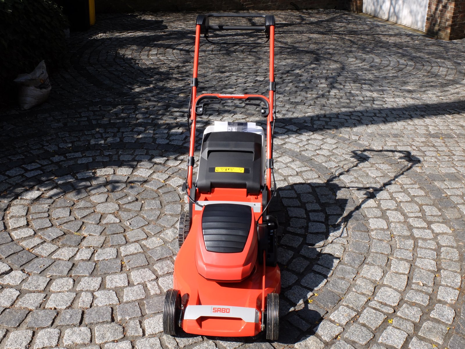 So sind wir dann auf einen Akkumäher von SABO gestoßen, der mit 47cm Schnittbreite zwar 7cm schmaler mäht als der alte, damit aber auch wendiger auf unserem inzwischen ziemlich mit Bäumen, Büschen und Blumen bestandenem Grundstück unterwegs ist. Außerdem ist er deutlich leichter, womit er für Susi Sausewind handhabbar wird. Da liegen ca. 30kg Gewichtsunterschied zwischen. Elektrisch mit Kabel war nie eine Option. Da hätte man immer locker knapp 100m Kabel hinter sich herschleppen müssen und das wahrscheinleich bei jedem zweitem Mähen zerstört. Aber Akkumäher scheint mir eine interessante Alternative zu sein. Natürlich muss man bedenken, dass die Motorleistung ausreichend und auch die Akkukapazität entsprechend angepasst sein muss. Bei dem gewählten Mäher gibt es zwei Akkusteckplätze und wenn er mit zwei Akkus bestückt ist (insgesamt 10AH, 40V) soll er mehr als eine Stunde mähen und damit für Flächen bis ca. 700m² ausreichend sein.