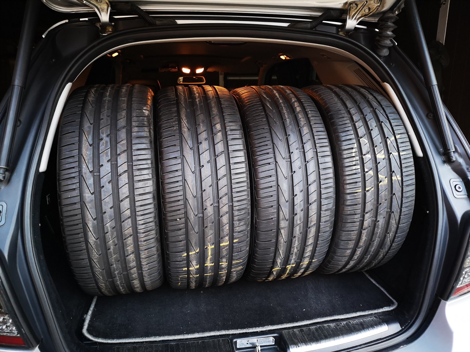 Moin, nun hab ich vorgestern einen kleinen Ausflug nach Osnabrück gemacht. Habe dort 4 Reifen abgeholt für meinen ML. Hankook Ventus evo2 265/45 ZR20 108Y. Bei den durchgetauschten von meinem Sohn waren ja 2 Reifen an den Außenseiten etwas Blank. Habe ohne Murren 200€ bezahlt, sollen nur 10000Km gelaufen haben.Stefan009
