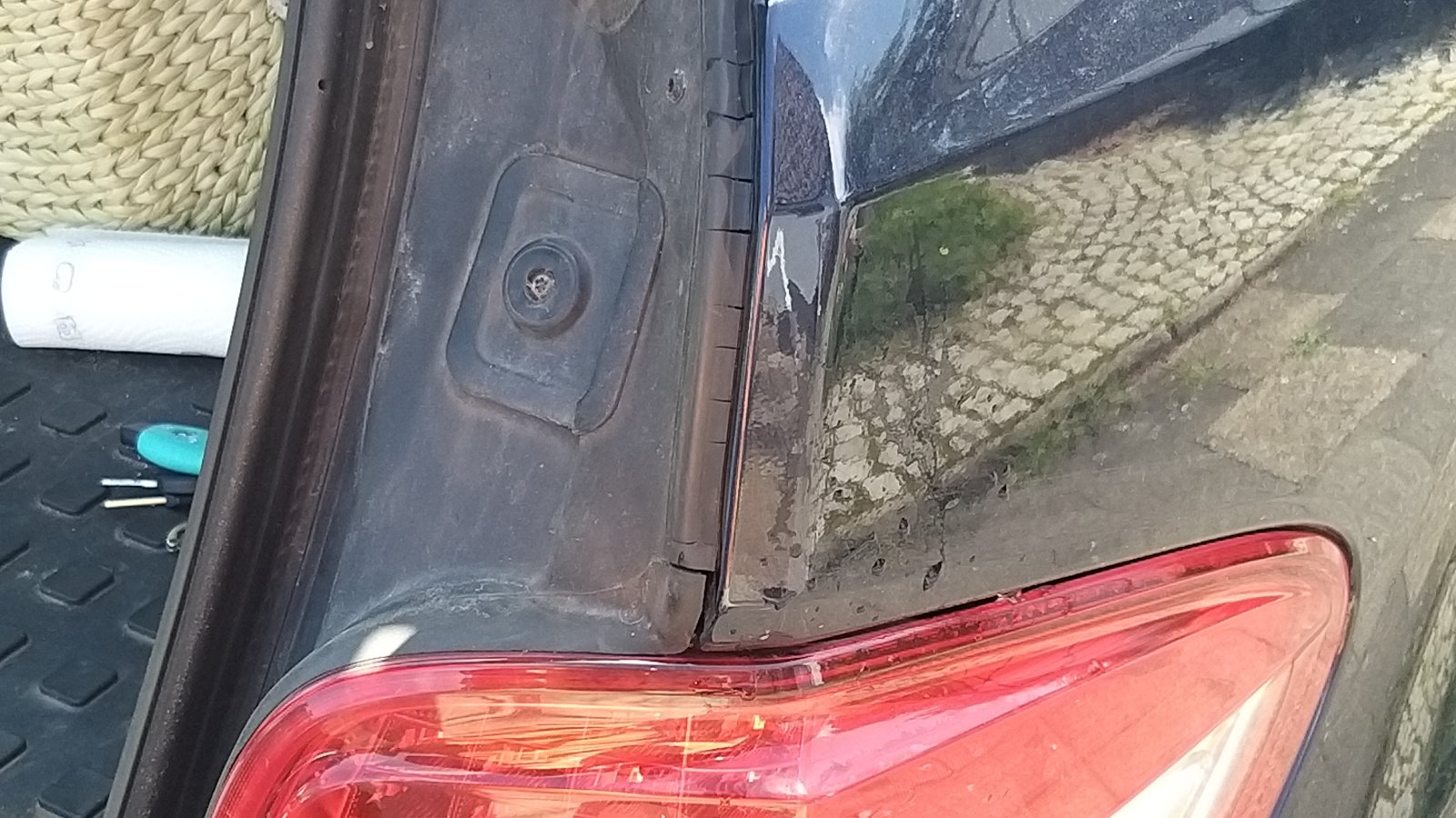 Rechts oberhalb der Heckleuchte sind Risse