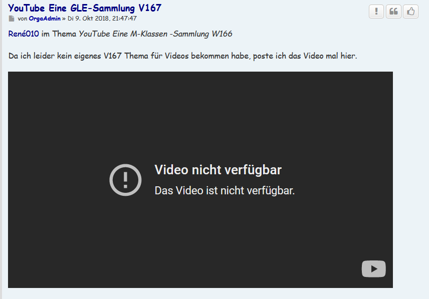 Hallo, tja im Thema "YouTube Eine GLE-Sammlung V167" ist das von mir verlinkte YouTube Video offensichtlich auch nicht mehr abrufbar. Zumindest sehe ich das hier: