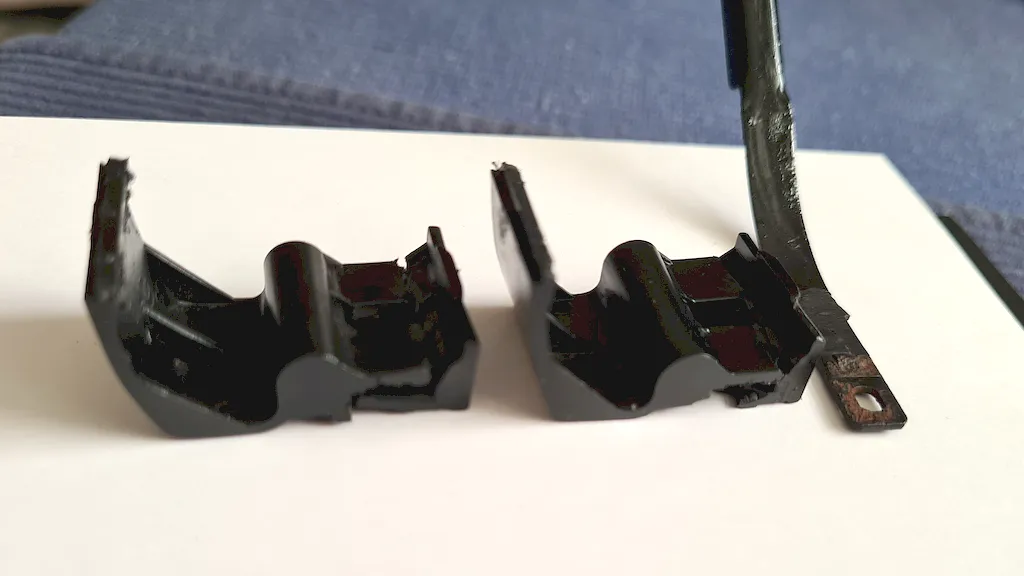 Zusammengesetzt sieht das so aus.<br />Das Teil muß die Federkraft aufnehmen, weshalb kleben des Hartkunststoffs wohl nicht halten wird.
